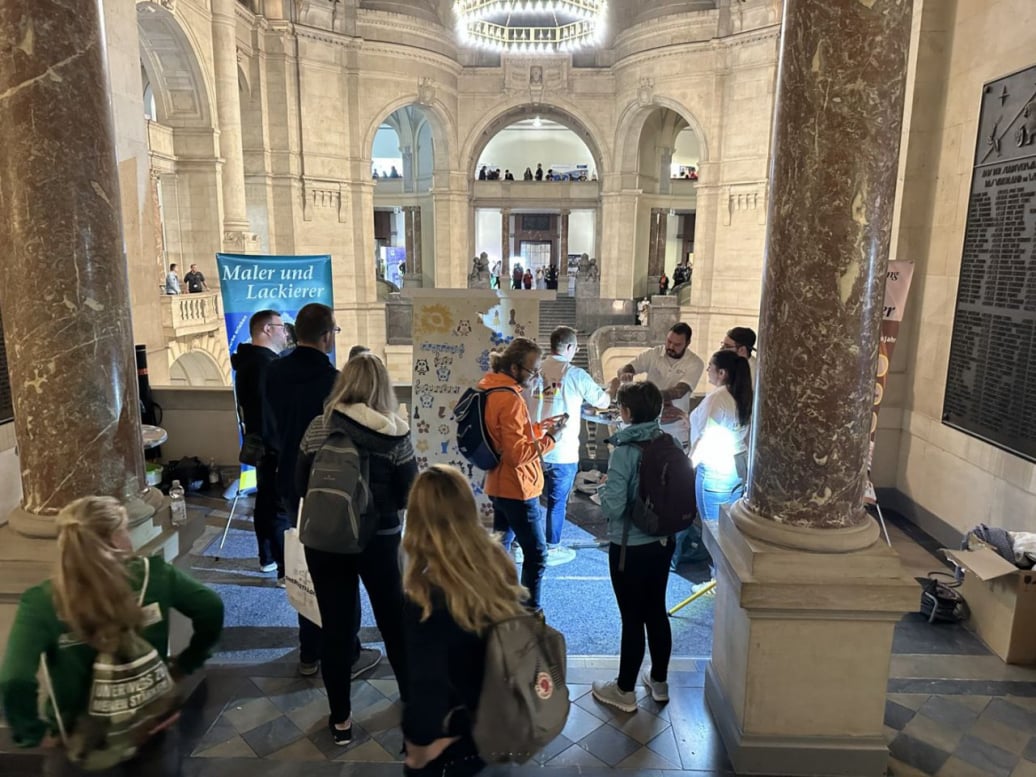 Auch dieses Jahr im September war die Innung wieder bei der Langen Nacht der Berufe im neuen Rathaus dabei. Viele Gespräche konnten mit den interessierten Jugendlichen geführt und Informationen zu unseren Berufen gegeben werden. Praktisch konnte man sich an einer Deko-Wand mit einer Schabloniertechnik versuchen. Dies wurde reichlich genutzt und Informationen zu der Ausbildung abgefragt - eine erfolgreiche Aktion, die auch nächstes Jahr wiederholt werden soll.