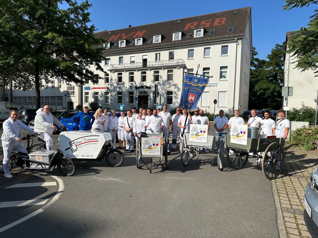 An dem diesjährigen Schützenausmarsch haben wir mit einer 30-köpfigen Fußgruppe, drei historischen Malerkarren und zwei E-Lastenfahrrädern teilgenommen. Jede Menge Kamelle wurde unter die Besucher gebracht und das Malerhandwerk konnte sich wieder einmal hoher, anerkennender Aufmerksamkeit erfreuen - für alle Teilnehmer zudem noch ein riesiger Spaß.