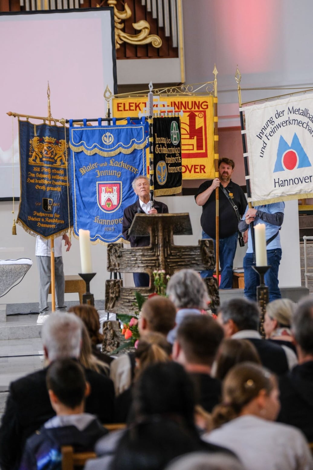 Auf dem evangelischen Kirchentag Anfang Mai war die Innung auch auf dem Handwerkergottesdienst feierlich mit der Innungsfahne vertreten.