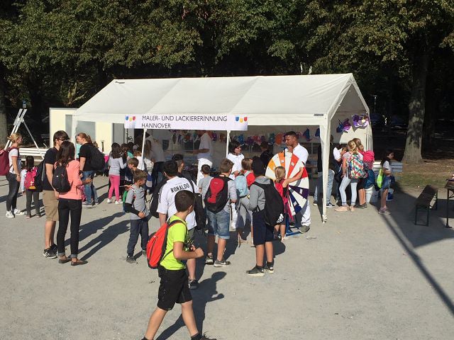 Erstmals war die Innung auf dem Welkindertag mit einem Aktiv-Stand vertreten - ein voller Erfolg ! Farbschleuder - Glücksrad - Maler-Pxi-Bücher - Kindermotive schablonieren - alles was Kinderherzen höher schlagen lässt! Unsere Zukunft war am Maschsee - und das Malerhandwerk hat sich dort erfolgreich präsentiert.